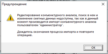 Во время импорта редактирование справочника другими пользователями запрещено
