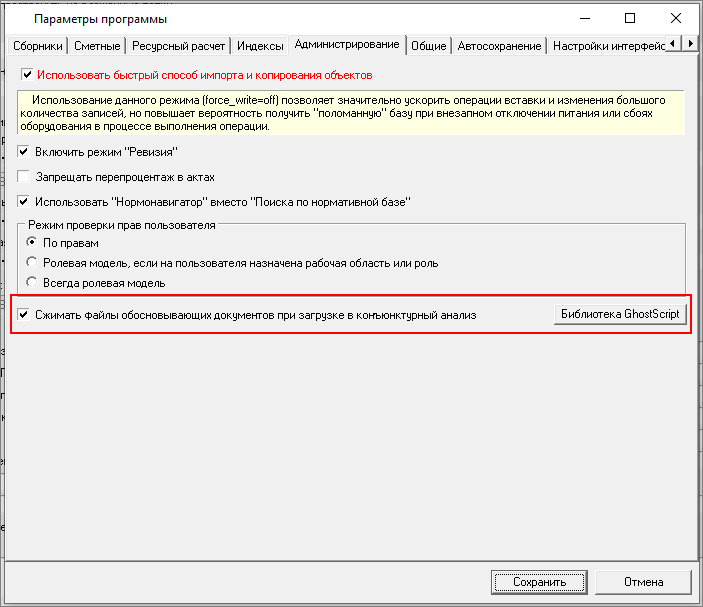 Важно. По умолчанию, в Параметрах программы - Администрирование (доступна только пользователю Администратор) - включена галка "Сжимать файлы обосновывающих документов при загрузке в конъюнктурный анализ". Снимать ее не рекомендуется