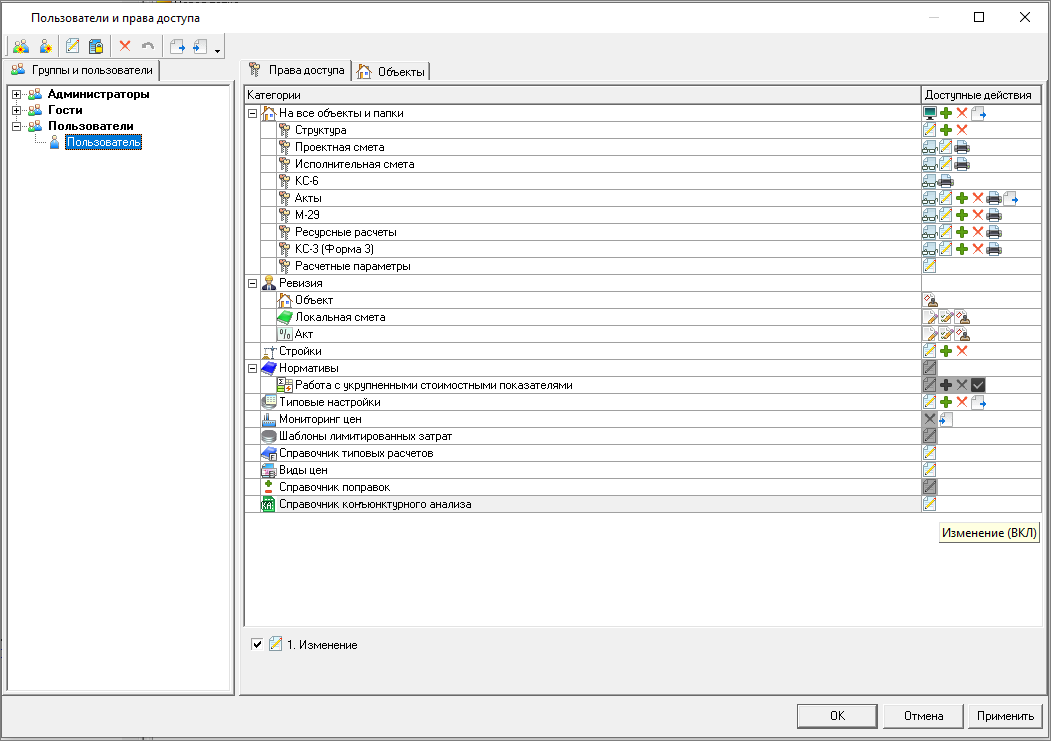 Редактирование справочника возможно только Пользователями с правами на его изменение